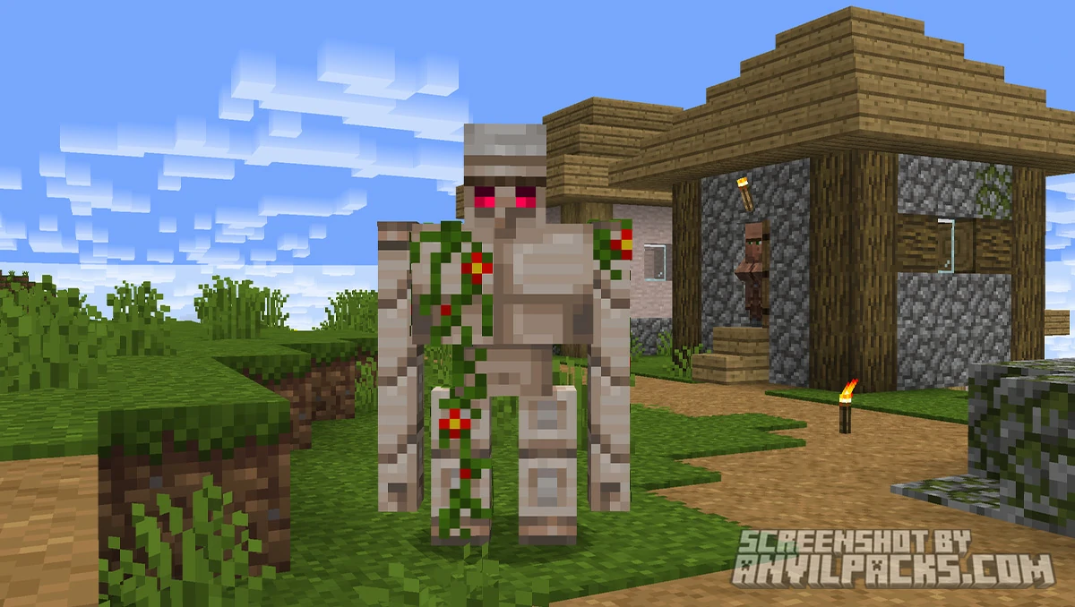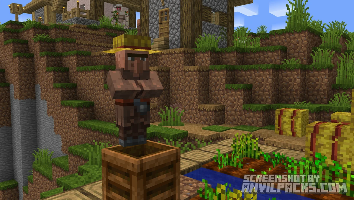Mobs. Every creature gets a redesign. The art style pulls heavy inspiration from Minecraft’s Programmer Art era and classic community content — the developer cites music videos like Fallen Kingdom as reference points. Villagers look more human-like. The Ender Dragon has more menacing detail. Boss bars get custom textures. The pack gives mobs personality that vanilla doesn’t bother with.