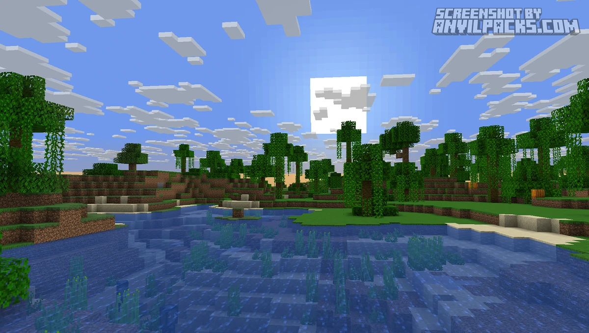 It feels like 6:00 PM in summer all the time. The lighting is warm and golden. The clouds (depending on your settings) keep that blocky, stylized aesthetic but with actual volume and depth.